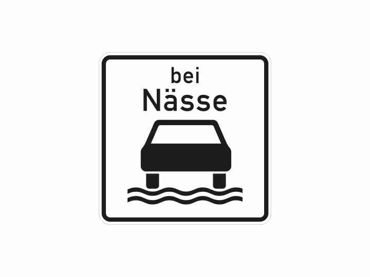Bei Nässe:道路が雨で濡れている場合(高速でよく見かける標識、通常は130km/hの道でも雨の際は時速80km/hまでなど標識と一緒に書かれていることが多い) |