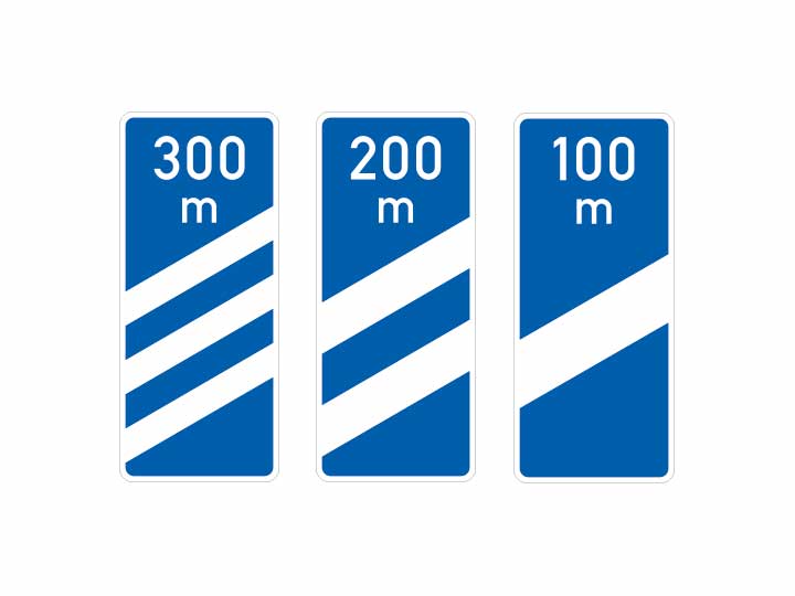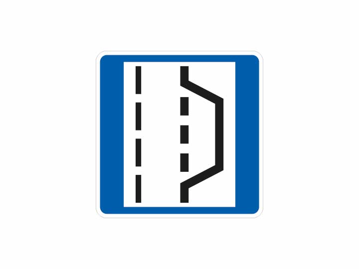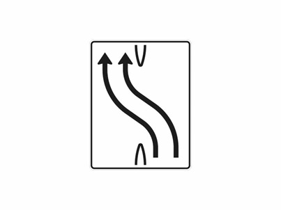 Einengung(Ende eines Fahrstreifens):右の車線が真ん中と繋がって一つになる