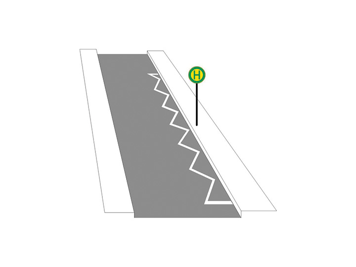 Grenzmarkierung für Halt- oder Parkverbote:ギザギザは駐車禁止 |